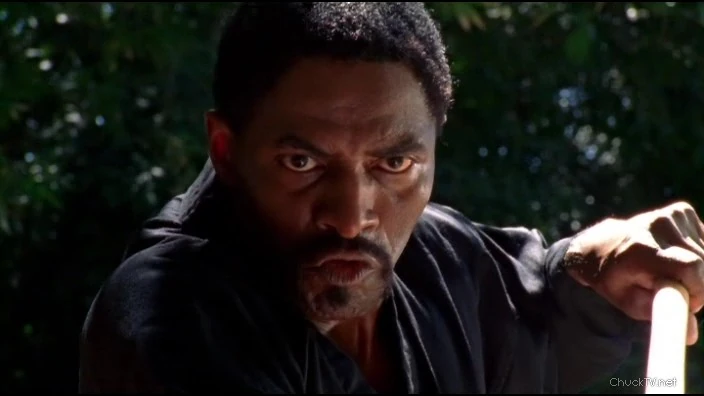 Chuck reopens the door for him just as the thief runs across Sarah. She fires her gun at him but misses. She follows the thief into a room, where two people in a glass walled lab point upwards, indicating the person is hanging behind her. The thief knocks her down and runs off out of one of the exit doors. Casey slams into him from the side, and they battle. The thief has him pinned and Casey stabs him with a pen. It gives Casey long enough time to yank of the persons mask only to discover it is his former sensei, who grins evilly at him. Too shocked to stop him, Casey watches as Bennett takes off, jumps into a car and it speeds away.