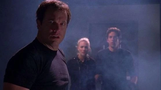 Chuck flashes and realizes that Keller works for the Ring and that Casey apparently doesn't know his old commanding officer is a traitor. He confronts Sarah while she assists in the search of Casey's apartment, and insists they have to help him. Despite the risks, Sarah admits she's happy to see Chuck willing to help Casey and agrees. The two re-infiltrate the base in hopes their security recommendations have not yet been implemented but are defeated almost immediately. When cornered by a team led by the security specialist, Stanley Fitzroy, Chuck and Sarah play to his ego and convince him they are there to review the changes. He then leads them safely to the lower levels where, after another alert is triggered, Sarah takes the key card from him needed to access the prisoner holding cells, but they are too late. An explosion rocks the facility, and they enter in time to see Keller and his men breaking Casey out. Chuck tries to warn Casey that Keller is with the Ring, but Casey admits he already knows.